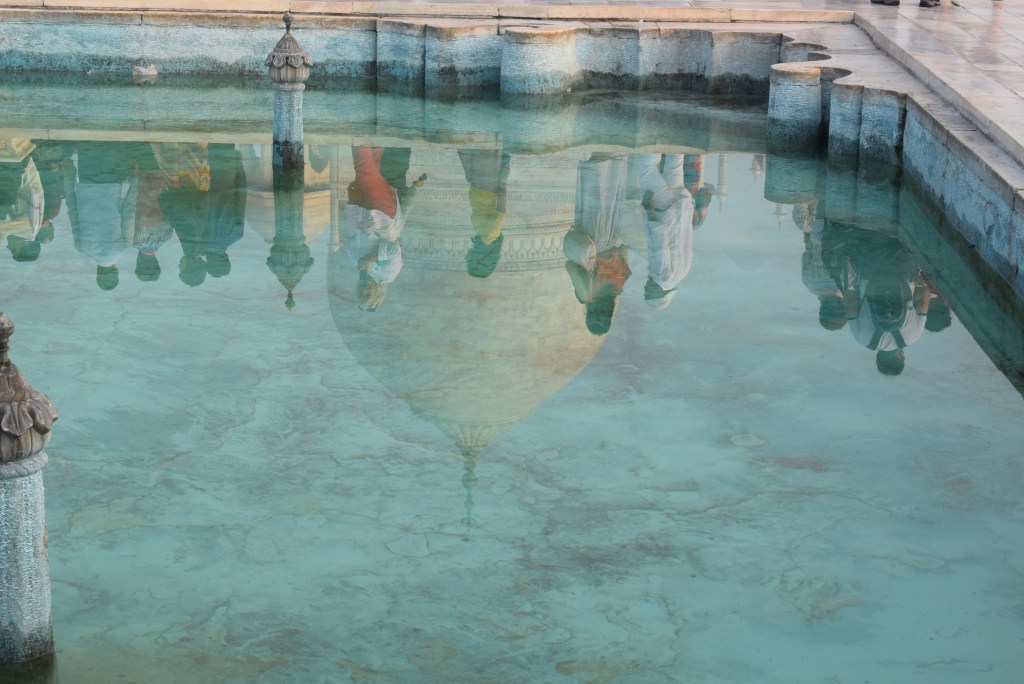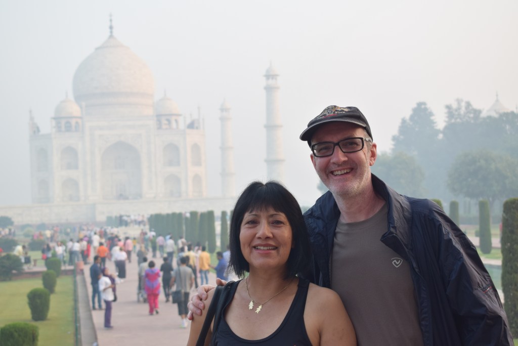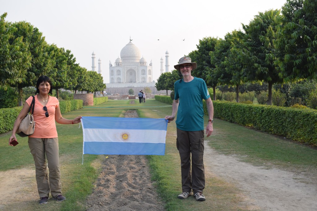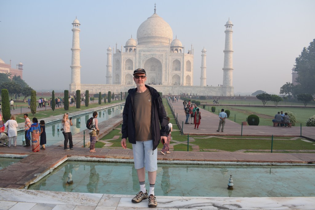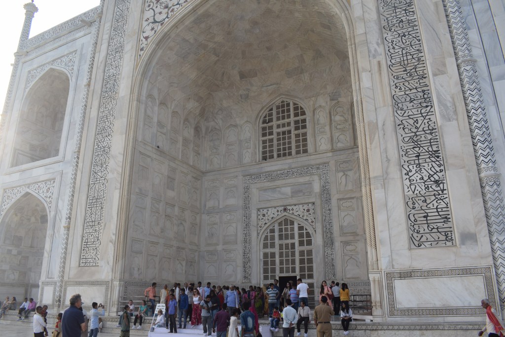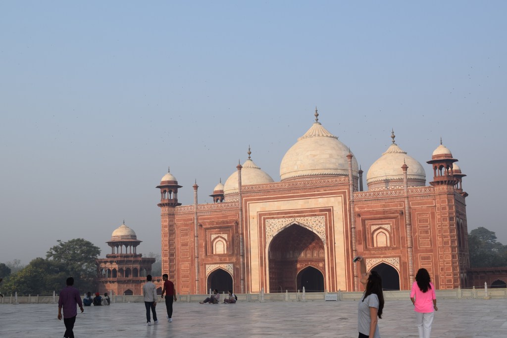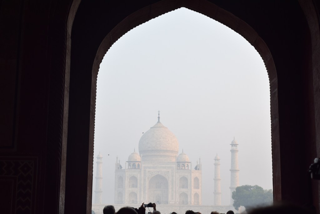 El Taj Mahal (hindi: ताज महल Tāj Mahal, urdu: تاج محل Tāŷ Mahal ‘Corona de los palacios’; /tɑːʒ mə’hɑl/)12 es un monumento funerario construido entre 1631 y 1654 en la ciudad de Agra, estado de Uttar Pradesh (India), a orillas del río Yamuna, por el emperador musulmán Shah Jahan de la dinastía mogol. El imponente conjunto de edificios se erigió en honor de su esposa favorita, Arjumand Banu Begum —más conocida como Mumtaz Mahal— que murió en el parto de su decimocuarto hijo. Se estima que en su construcción trabajaron unos 20 000 obreros bajo dirección de un conjunto de arquitectos liderados por el arquitecto de la corte, Ustad Ahmad Lahori.34